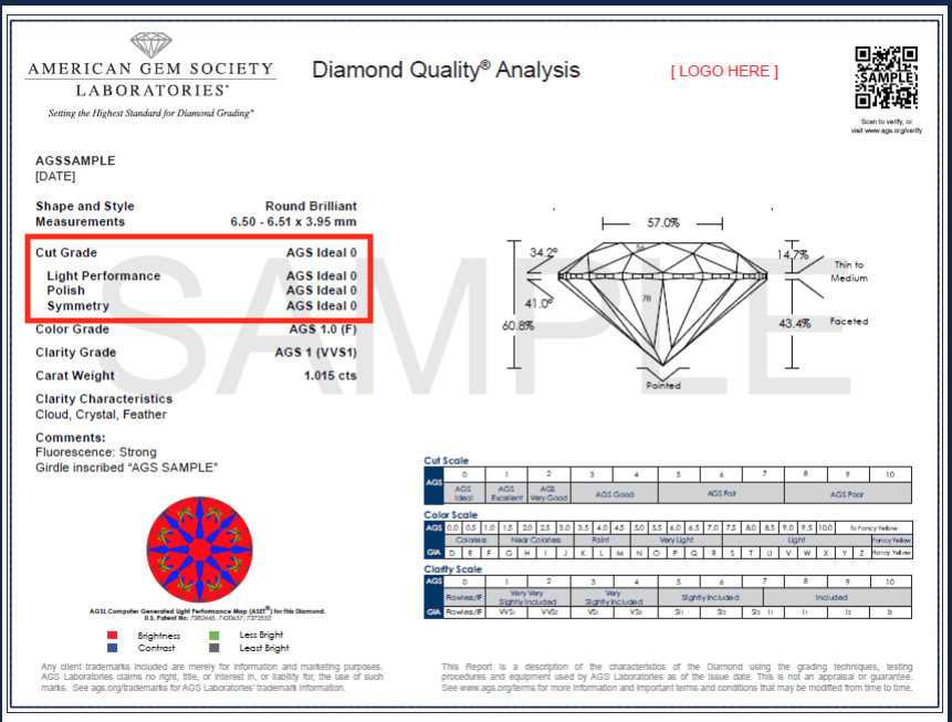 (American Gem Society Laboratories) A US based laboratory considered the foremost authority on diamond light performance cut grading and serving clients worldwide.