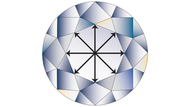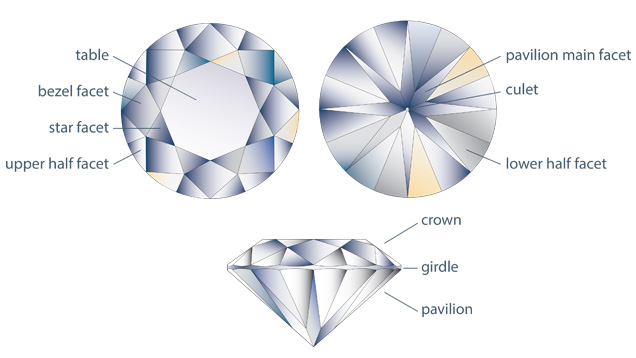 These are the main facets located on the crown of the diamond. The 8 “kite” shaped facets on the round stone are an example.