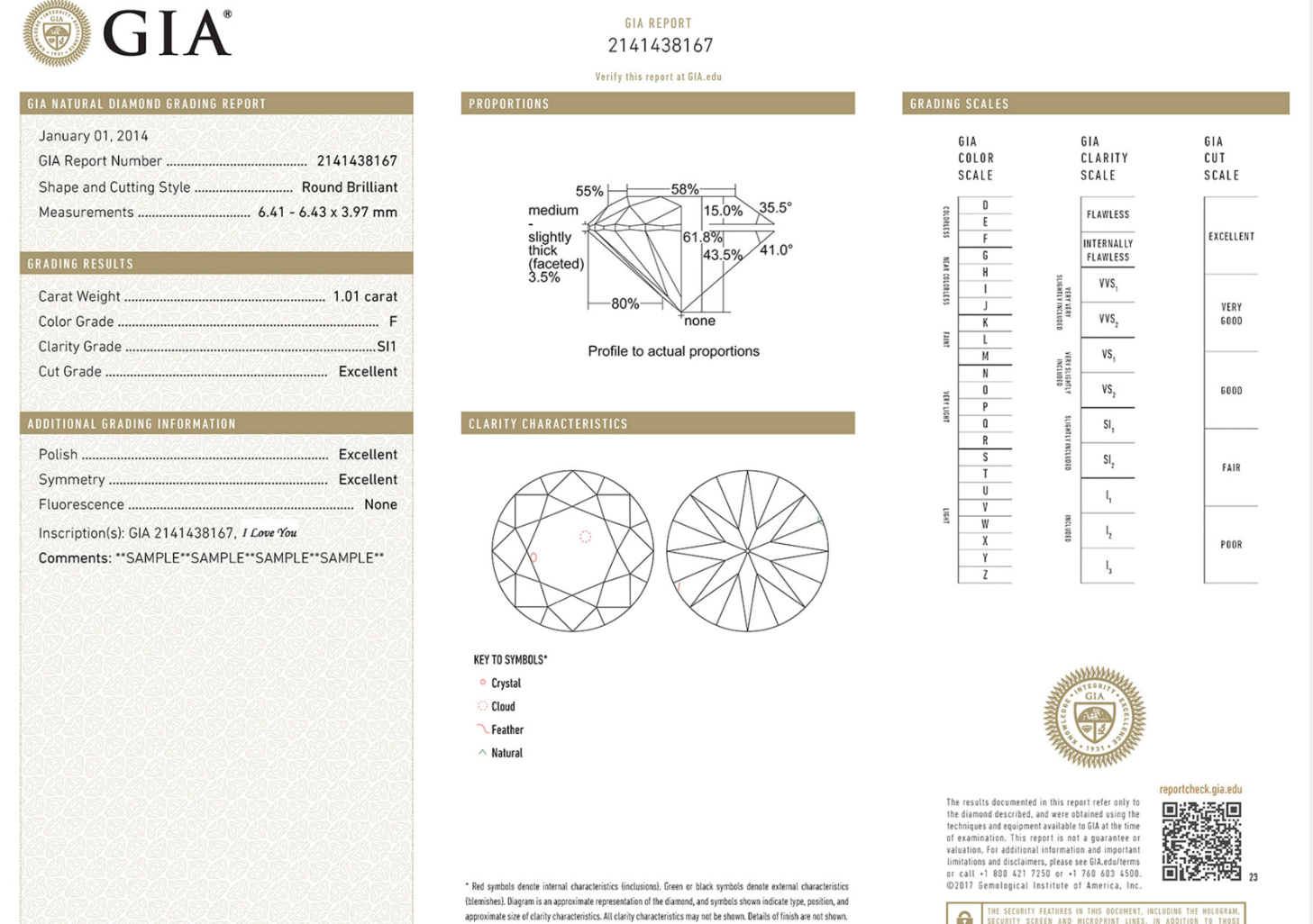 The comments section of a GIA (Gemological Institute of America) grading report may include additional information or observations that don't fall under the standard 4 Cs (Cut, Color, Clarity, and Carat weight). It can provide details about fluorescence, additional grading information, or any unique characteristics of the diamond. The comments section adds context to the diamond's overall assessment. Often, the GIA will comment about additional clouds, graining or pinpoints that may exist in the diamond.