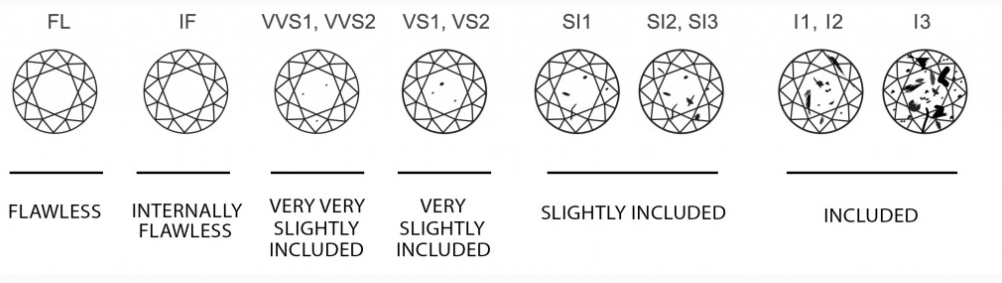 Diamond clarity refers to the presence of internal and external imperfections, often called inclusions and blemishes, respectively. These natural characteristics are formed during the diamond's growth process. Clarity is graded on a scale established by gemological organizations like GIA (Gemological Institute of America), ranging from "Flawless" (no visible imperfections under 10x magnification) to various levels of inclusion, such as "Very, Very Slightly Included" (VVS), "Very Slightly Included" (VS), "Slightly Included" (SI), and "Included" (I). A higher clarity grade typically indicates a more valuable diamond, but the impact on appearance depends on the size, location, and nature of the imperfections.