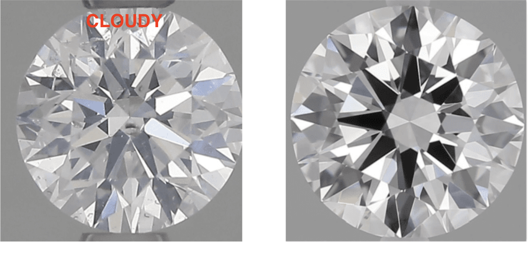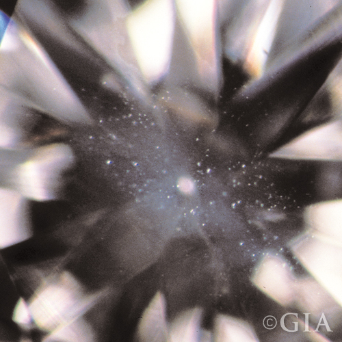 Is a type of inclusion that is a “cluster” of pinpoints. These are generally minute but when together they can affect the brilliance/sparkle of a diamond. Small “clouds” that are translucent, are of limited concern, however larger “clouds” are not a positive. “Clouds” will be noted in the Comments section and/or the Key-to-Symbols area of the GIA grading report.
