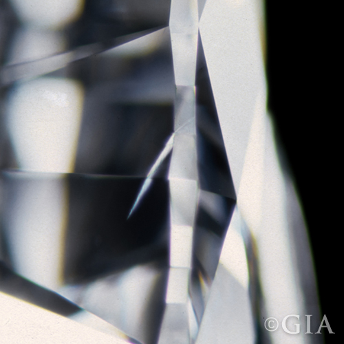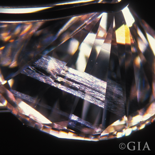 Occurs at impact. Generally a small area with root-link feathers. Indication of a “Bruise” will appear in the Key-to-Symbols area of the GIA grading report.