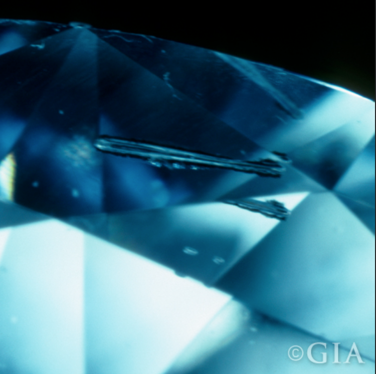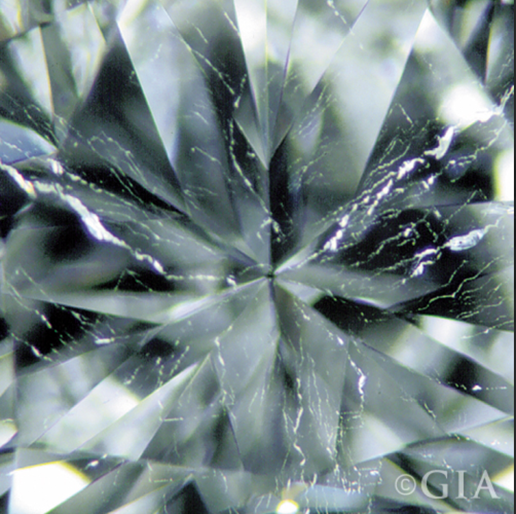 Think of looking at the very top of the trees in the forest during wintertime! Note the leafless thin tree branches, imagine those thin, light, tree branches inside a diamond, there you have your description of a “twinning wisp”! Those thin, wispy, branches are what appear in a diamond. They are made up of crystals, clouds and/or pinpoints. Indication of a “Twinning Wisp” will appear in the Key-to-Symbols area of the GIA grading report.