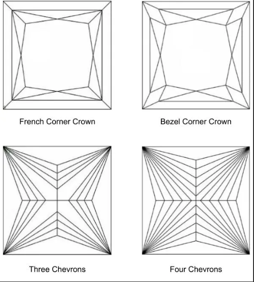 These are the “V” shaped facets located on the Pavillion of a Princess cut diamond.