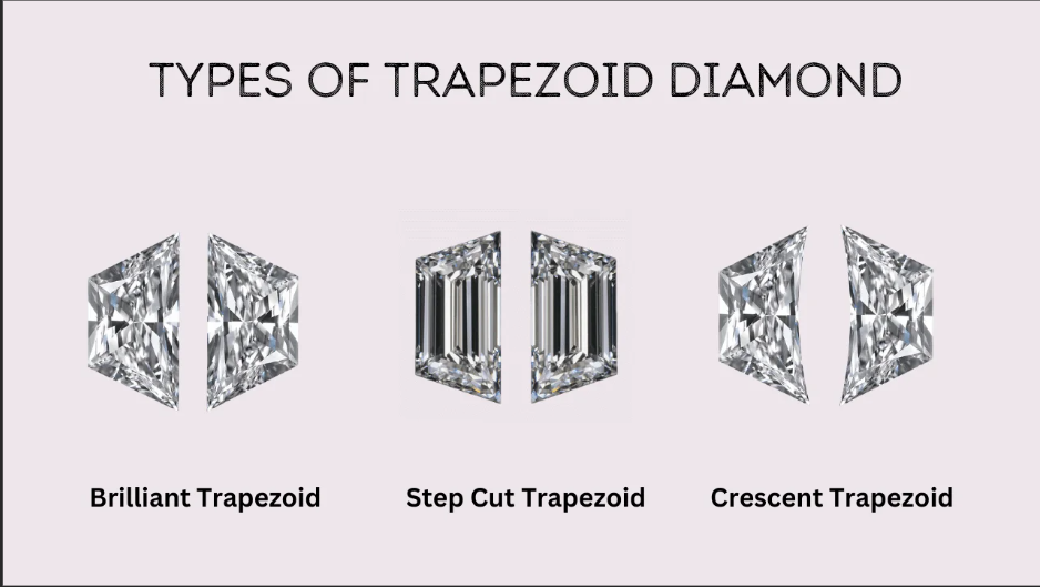 A four sided step cut with two sides of uneven length. Usually used as side stones for a straight-sided center.