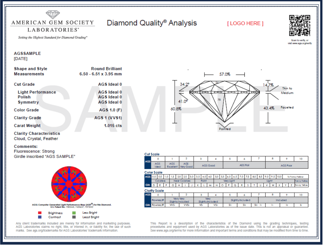 The American Gem Society (AGS) is a reputable gemological grading laboratory founded in 1934. Renowned for its rigorous standards, AGS evaluates diamonds based on cut, color, clarity, and carat weight. Utilizing advanced techniques, AGS provides precise assessments and comprehensive reports, offering consumers and the jewelry trade trusted information for informed purchases.