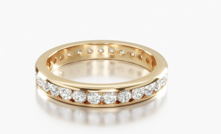 Channel setting is a type of setting where diamonds or other gemstones are set into a narrow groove in the metal of the jewelry. The stones are set side by side, with the edges of the stones touching, creating a smooth, continuous surface. This type of setting is popular for its modern, sleek look, and is often used for engagement rings and other pieces of jewelry. Here are two examples of channel set from JamesAllen and Whiteflash.