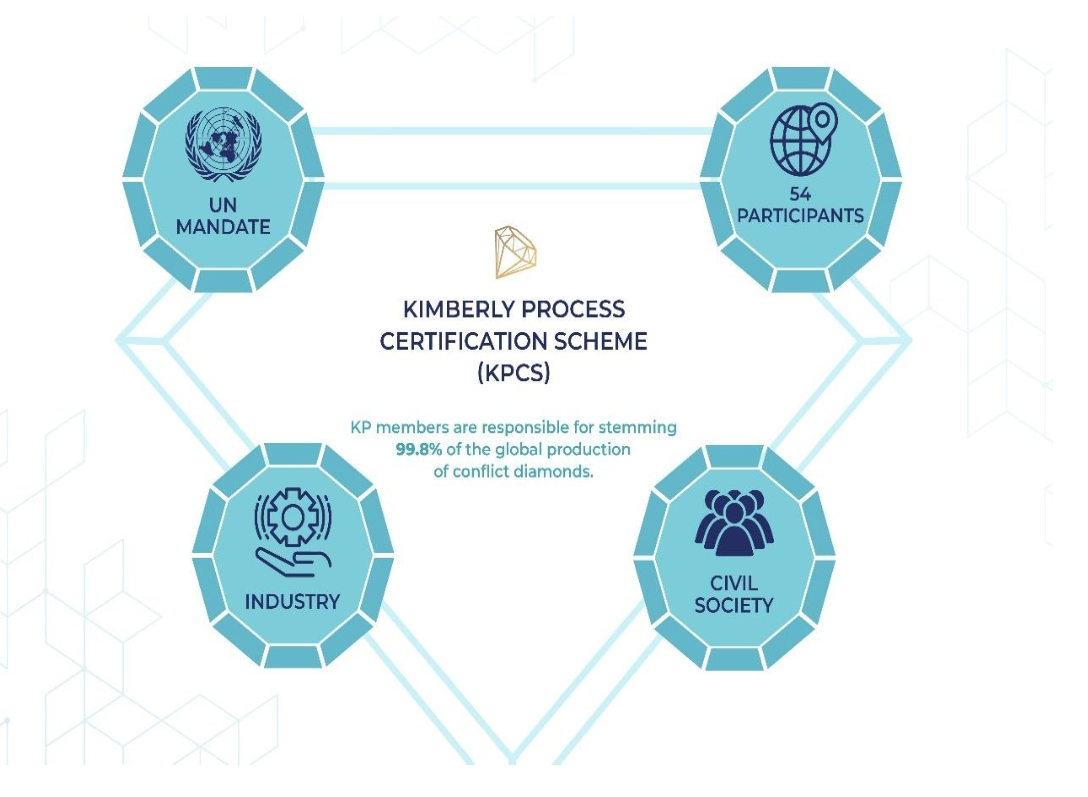 Diamonds illicitly obtained and involved in fueling conflict between militant groups and legally established governments. The Kimberley Process was instituted in 2002 to stem the flow of conflict diamonds.