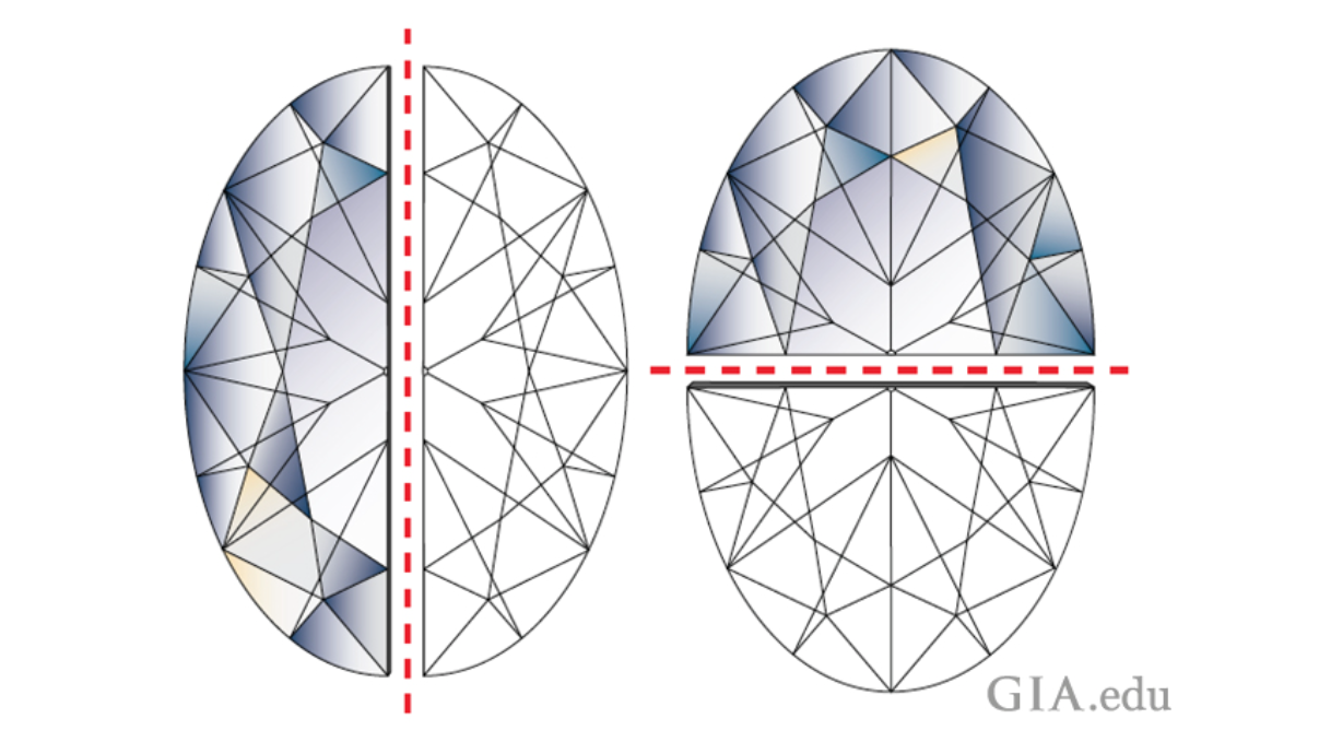 Diamond symmetry refers to the precision with which a diamond's facets and angles are cut and how well they align with each other. A well-balanced symmetry ensures that light interacts optimally with the diamond, contributing to its overall brilliance and sparkle. Symmetry issues, such as misaligned facets, can impact a diamond's visual appeal, but the impact might not be as noticeable to the naked eye in some cases. It's one of the factors assessed in diamond grading reports. Grading for symmetry may run from excellent - very good - good - fair - poor. The lower the grade, the less desirable the diamond will be.